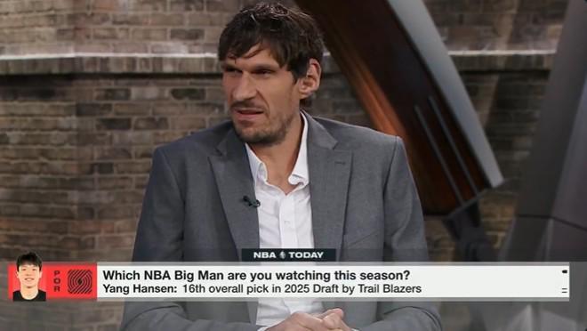 今日北京时间,前NBA中锋、CBA广厦男篮外援博班·马扬诺维奇参加了ESPN的专访。节目中,博班对中国选手杨汉森大加赞赏。主持人:“我们谈到了西部联盟,以及西部联盟大个子的多样性。他们几乎每场比赛都必须有不同的选择来对抗小个子,才能继续对抗雷霆。博班告诉节目,杨汉森是NBA下一个前途无量的中锋球员,他说:“我认为这是一个来自中国-瀚森的人。我在中国度过了上半个赛季,我观察了她的比赛方式,这个家伙太棒了。你知道,他的移动方式,他如何护球,他应该如何防守,他想做什么。你看,他的滑步、欧洲步,这些都是中国制造的,非常好,还有他的扣篮等等。我在那里观看了比赛,也许不同之处在于他不像在NBA那样,而且他还很年轻。还有我的前任期望值更高,第 16 个选择也是如此。他们说选 40、42、41 等等。我真的为她感到高兴。至于你提到的运球,完成后他会开始提高自己的技术,他一定会做到(在NBA扬名)。 “